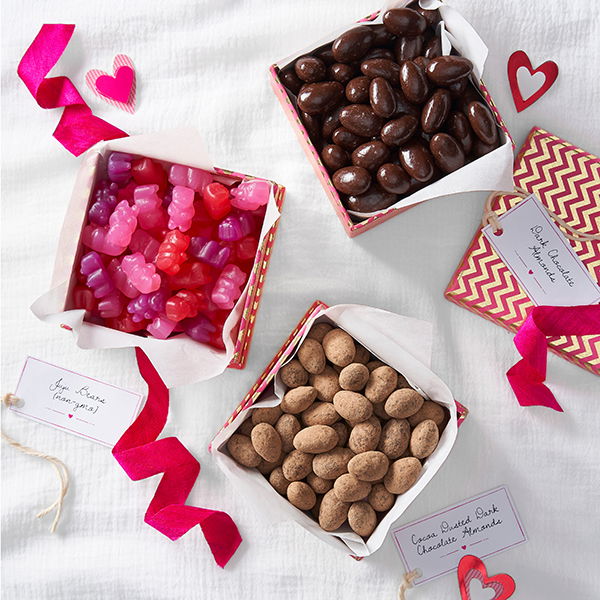 Put together a decadent Valentine’s gift package with mouthwatering chocolates from Fresh Thyme. You’ll discover some great chocolate deals in the Bulk Department, such ones for Sea Salt & Turbinado Sugar Dark Chocolate Almonds, Cocoa-Dusted Dark Chocolate Almonds, and non-GMO Juju Bears, shown. Explore a variety of concoctions that pair dark chocolate with almonds, cashews, cherries, cranberries, espresso beans, ginger, malt balls, pecans, or raisins.